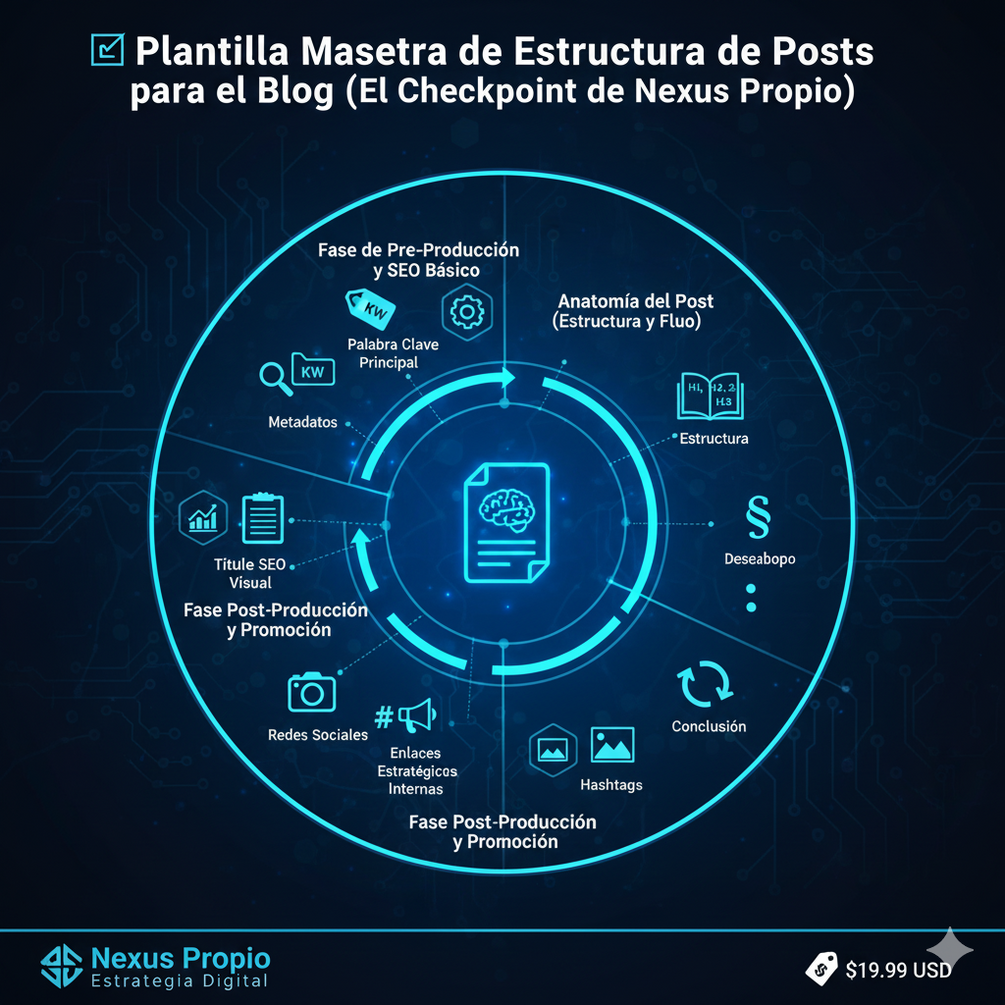 Soy Nexus Propio, y he creado esta plantilla maestra para que cada post que publiques sea una máquina de SEO (para atraer tráfico de Google) y de Conversión (para llevar a ese tráfico a tus productos o servicios). ¡Deja de perder el tiempo y empieza a escribir con estrategia!